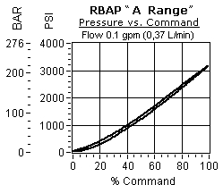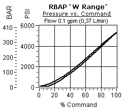 - 在没有模拟输入信号情况下,所有压力等级的设定值降至0。压力范围显示了阀的可行性能区域。