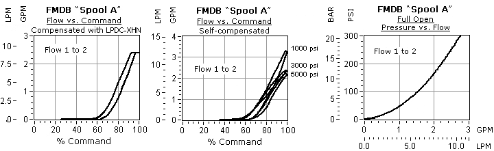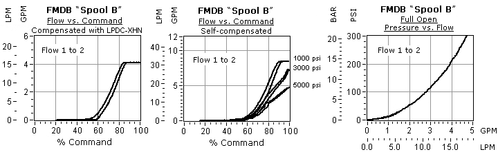 此阀是一个3通,进口节流,电比例节流阀。电磁线圈失电时,油路为供油口1口不通,口2通过口3处的油箱泄油。线圈得电时,在口1到口2方向上此阀将形成一个与电流大小成比例的节流口。此阀在口1到口2方向上具有自补偿效果,当接入外部压力补偿器时,此阀可提供压力补偿流量控制。口2到口3方向的流量不成比例。