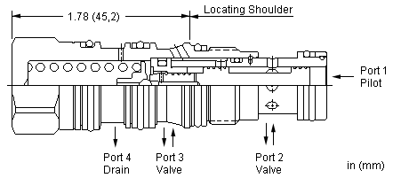 此阀是2位2通比例节流阀.口2和口3常闭。口1先导压力抵抗弹簧力会在口2到口3方向上形成一个与口1压力大小成比例的可变节流口。液动力,弹簧力和先导压力平衡下会使此阀随负载压力变化而产生一定程度的自补偿效果。口1和口4的压力直接相互抵抗。