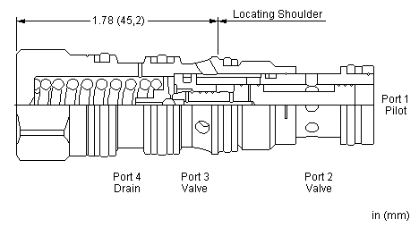 此阀是2位2通比例节流阀.口2和口3常闭。口1先导压力抵抗弹簧力会在口2到口3方向上形成一个与口1压力大小成比例的可变节流口。液动力,弹簧力和先导压力平衡下会使此阀随负载压力变化而产生一定程度的自补偿效果。在弹簧偏置位,口3接通口4泄油。当此阀用在进口流量控制的油路中且流经口3后接平衡阀,泄油特性在此是有益的。当增加口1先导压力,泄油通道将关闭。口1和口4的压力直接相互抵抗。