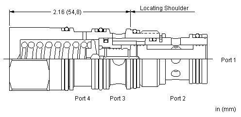 此阀是2位2通比例节流阀.口2和口3常闭。口1先导压力抵抗弹簧力会在口2到口3方向上形成一个与口1压力大小成比例的可变节流口。液动力,弹簧力和先导压力平衡下会使此阀随负载压力变化而产生一定程度的自补偿效果。在弹簧偏置位,口3接通口4泄油。当此阀用在进口流量控制的油路中且流经口3后接平衡阀,泄油特性在此是有益的。当增加口1先导压力,泄油通道将关闭。口1和口4的压力直接相互抵抗。