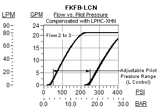 - 可选的调节方式(L控制)是通过先导压力的调节从而控制流量。调节控制是在给定的先导压力情况下,人工地提高或者减少流量。调节范围是50-250psi(3.5-15bar),标准设定为100psi(7bar)。