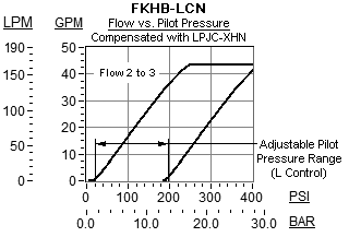 - 可选的调节方式(L控制)是通过先导压力的调节从而控制流量。调节控制是在给定的先导压力情况下,人工地提高或者减少流量。调节范围是20-200psi(1.4-14bar),标准设定为100psi(7bar)。