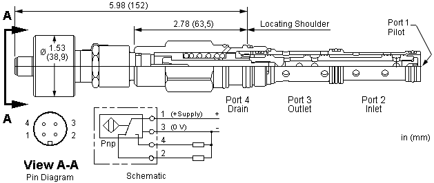 此阀是2位2通比例节流阀.口2、3和口4、5常闭。口1先导压力抵抗弹簧力会在口2、3到口4、5方向上形成一个与口1压力大小成比例的可变节流口。节流口有一定程度的自补偿效果。此阀使用双通道设计。口2、3、4、5结合而形成口2、3和口4、5。一双口可看成单独区域来对待。此阀利用切换活塞来保证阀可靠关闭。
