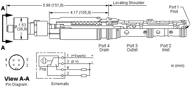 此阀是2位2通比例节流阀.口2、3和口4、5常闭。口1先导压力抵抗弹簧力会在口2、3到口4、5方向上形成一个与口1压力大小成比例的可变节流口。节流口有一定程度的自补偿效果。此阀使用双通道设计。口2、3、4、5结合而形成口2、3和口4、5。一双口可看成单独区域来对待。此阀利用切换活塞来保证阀可靠关闭。