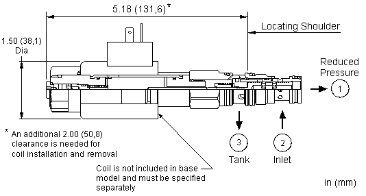 - 口3处的压力直接以1:1的比例增加到阀的设定值上,且压力不能超出3000 psi(210 bar)。