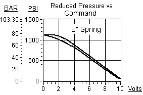 - 没有电信号,减压压力设置为用户指定的缺省值。当增加输入到线圈的电信号命令时,会比例减少二次压力值。